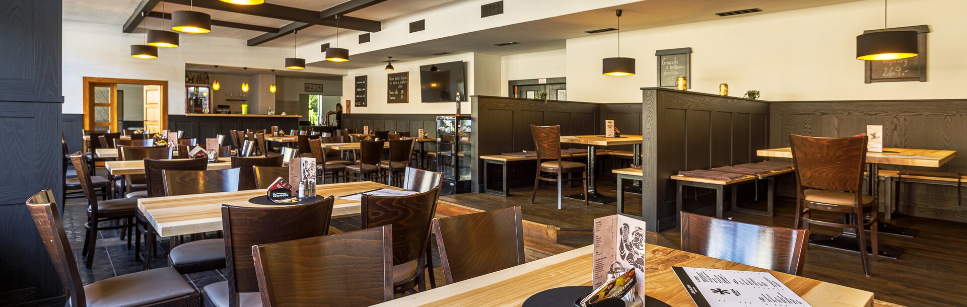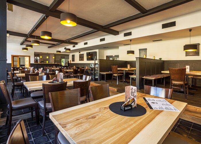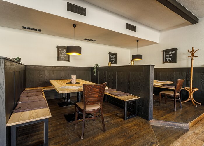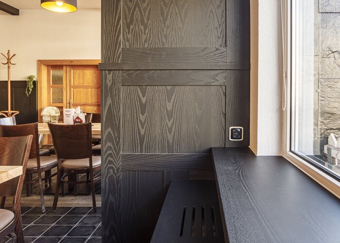 Stolárstvo Hilfe s.r.o. realizovalo interiér reštaurácie v Kraslicích s moridlom Arova Flex v odtieni Lava a ekologickým prémiovým lakom Bluefin Terra-Diamond v matnom stupni lesku G05.