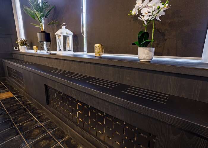 Stolárstvo však pri realizácii dbalo aj na kvalitné materiály, ktoré sú o to dôležitejšie, pokiaľ sú do verejného interiéru. Preto zvolili kvalitné kovanie a spojovací materiál od Würth. Na povrchovú úpravu nábytku boli potom jasnou voľbou naše špičkové produkty – univerzálne moridlo Arova Flex v hnedočiernom odtieni Lava a prémiový vodouriediteľný lak Bluefin Terra-Diamond v matnom stupni lesku G05, ktorý garantuje perfektný vzhľad a dlhú životnosť povrchov. Vďaka starostlivému spracovaniu a kvalitným materiálom tak vznikol interiér, ktorý kombinuje prírodnú krásu dreva s modernými materiálmi.