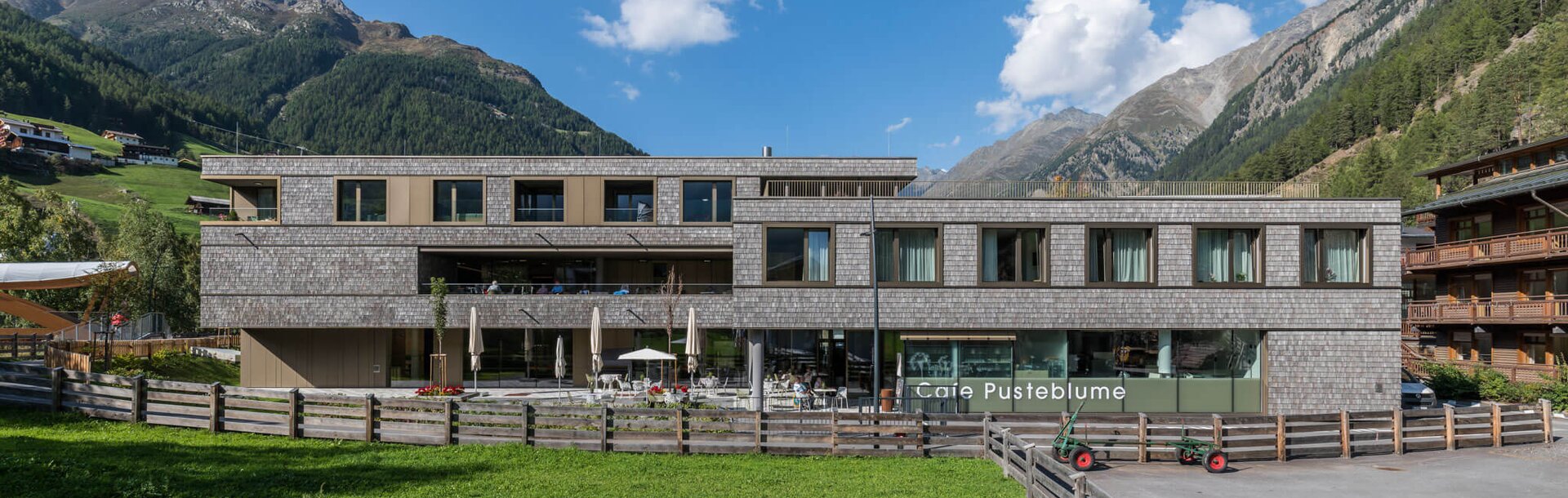 Tradičná spoločnosť „Astner Holzschindeln“ tak veľmi pomohla so Sociálnym centrom Sölden: pred položením bolo všetkých 60 000 šindľov prevedených do hliníkovej šedej - ošetrených produktom Pullex Silverwood. Od začiatku vyžarujú ušľachtilé striebro a sú tiež chránené pred škodcami a nerovnomerným zvetrávaním. To je tiež dôsledok myšlienky zachovanie zdrojov a udržateľného hospodárstva.